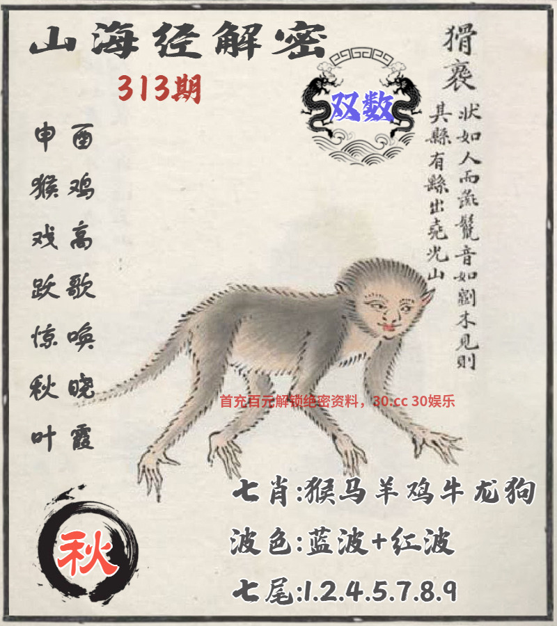 302期:🎼绝杀二尾🎼【0.7尾】开:猴22准